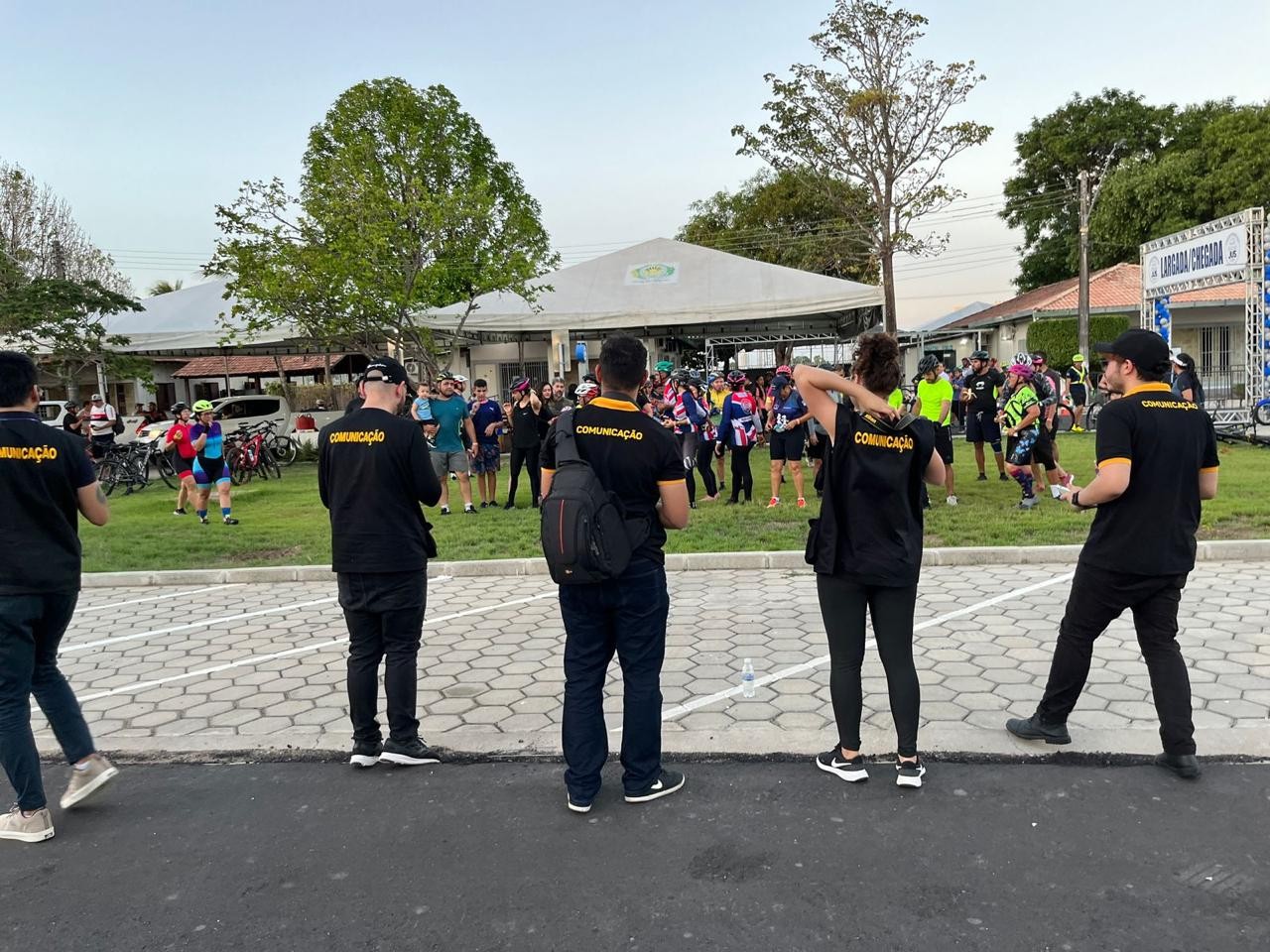 Foto 2: Imagem colorida da equipe de comunicação atuando em ambiente externo